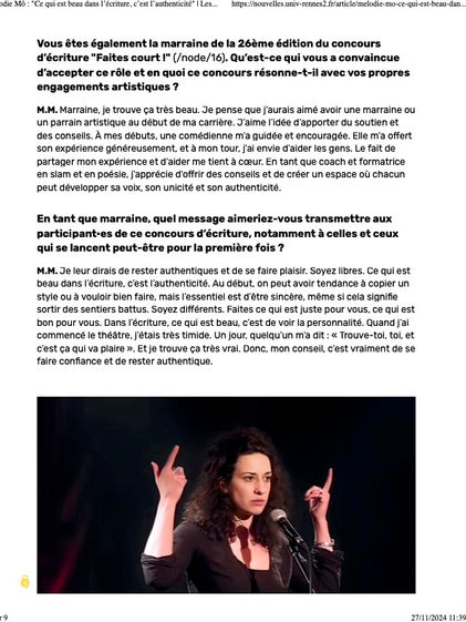 ITW Bienvenue chez vous les bretons, radio France, Slam poésieMélodie Mô /